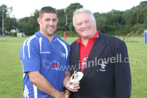 Casnewydd Saints Captain recieves the trophy |