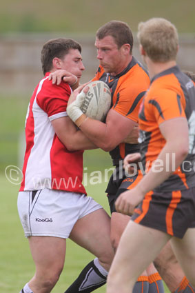 ![]() Debutant Mark Harvey stops Lee Gommersal. Ref CrusadersRes_HullKR 10 |
