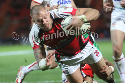![]() Lee Williams takes on Martin Gleeson. Ref: England_Wales 15 |