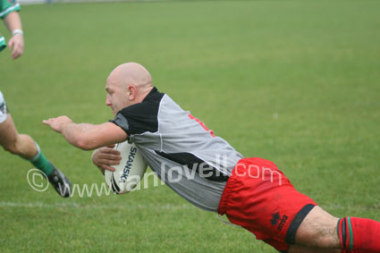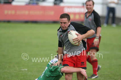 ![]() Captain Jason Hill crashes through the defence...Ref: WalA_IreA 03 |
