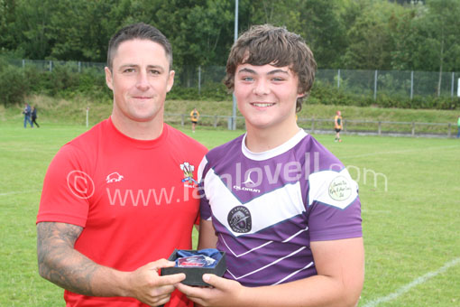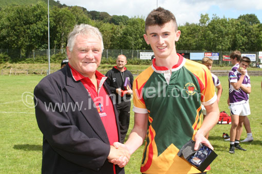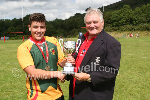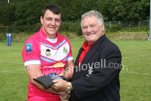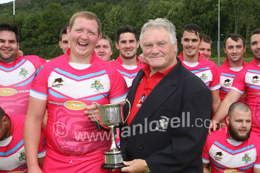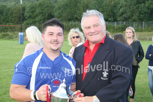 Casnewydd Saints Captain recieves the trophy |