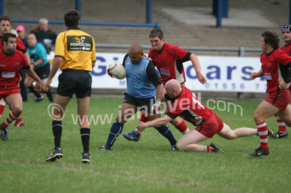 ![]() Cardiff's Gareth Holtam tries to break through. Ref: Bulls_Demons 01 |
