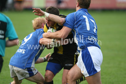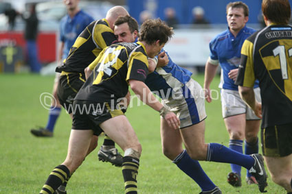 ![]() Aled James and Neale Wyatt tackle Lee Marsh. Ref: Cru_Swint 03 |