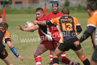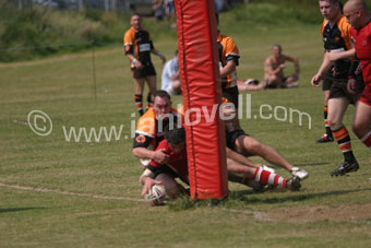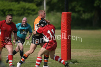 ![]() Tigers' Richard Jenkins scores a try. Ref: Dem_Tig 08 |