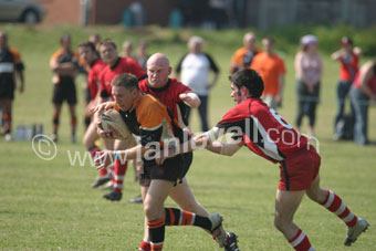 ![]() John Byers and Gareth Jones tackle. Ref: Dem_Tig 10 |
