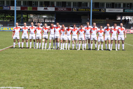 ![]() The England squad line up. Ref: Dragonhearts 02 |