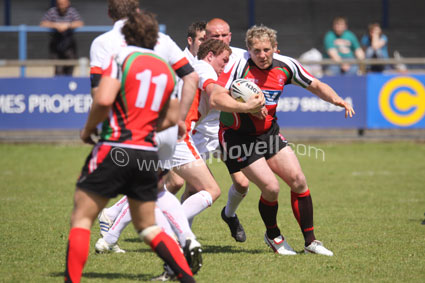 ![]() Craig Fox tackles David Orwell. Ref: Dragonhearts 22 |