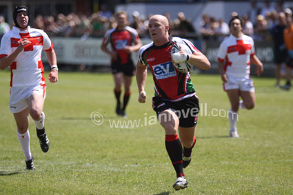 ![]() Phil King crosses for a disallowed try for England. Ref: Dragonhearts 11 |
