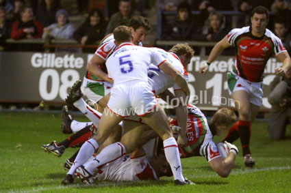 ![]() Lee Williams takes on Michael Shenton. Ref: Gillette 21 |