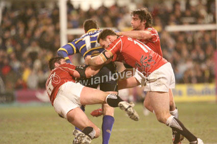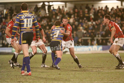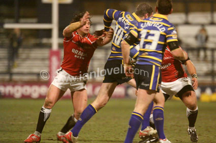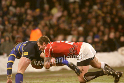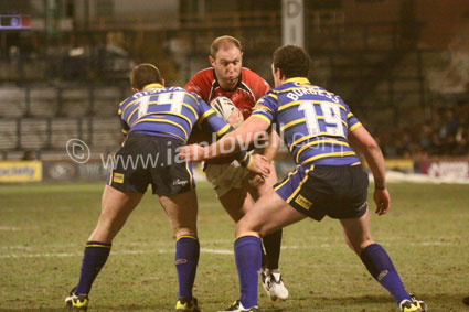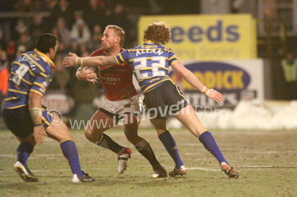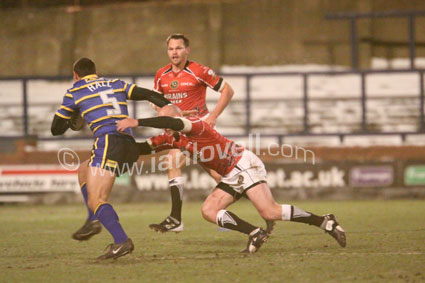 ![]() Neil Budworth stops Lee smith. Ref: Rhinos_Crusaders 19 |