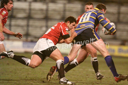 ![]() Mark Dalle Cort is held off by Lee Smith. Ref: Rhinos_Crusaders 04 |
