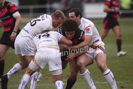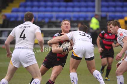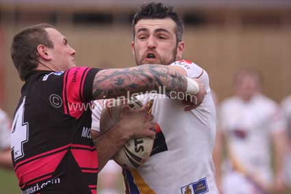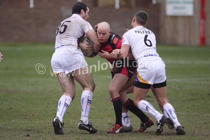 ![]() Loz Wildbore is held 2 metres from the line. Scorpions_Whitehaven 22 |