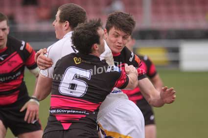 ![]() Loz Wildbore and Lewis Reece stop Benson. Scorpions_Whitehaven 16 |