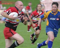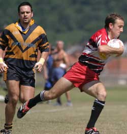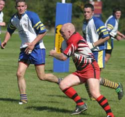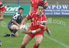 ![]() Pete Moore of Cardiff Demons races through for a try. |