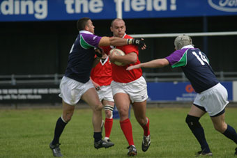 ![]() Cardiff Demons' Idris Evans launches an attack versus Newport Titans |