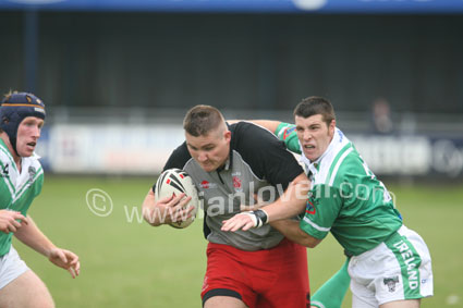 ![]() Captain Jason Hill crashes through the defence...Ref: WalA_IreA 03 |